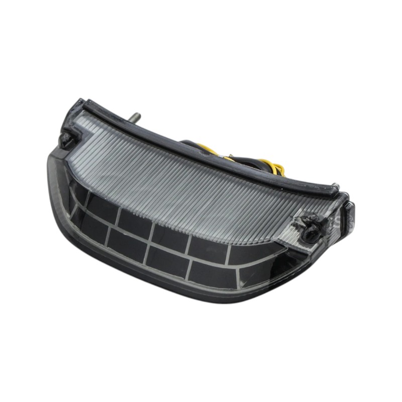 Stop spate LED integrat aftermarket, conceput pentru a inlocui direct stopul original al motocicletei. Integreaza functiile de pozitie, frana si semnalizare intr-un singur ansamblu compact, oferind un aspect modern si sportiv partii din spate.